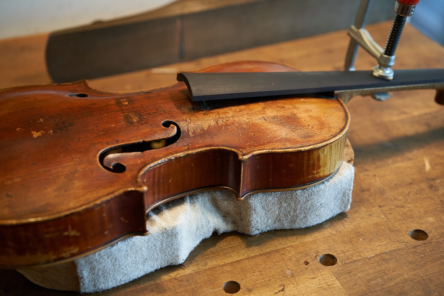 Besonderen Wert legen wir auf die gute Spielbarkeit Ihres Instrumentes. Griffbrett, Stimme, Steg, Wirbel und Saitenkerben müssen regelmäßig kontrolliert und überarbeitet werden.